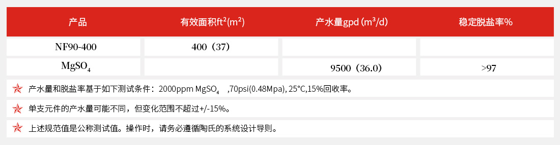 NF90-400高鹽分去除率 • 去除率效果明顯高有機化合物去除率,如:殺蟲劑、除草劑和THM 前驅物等。